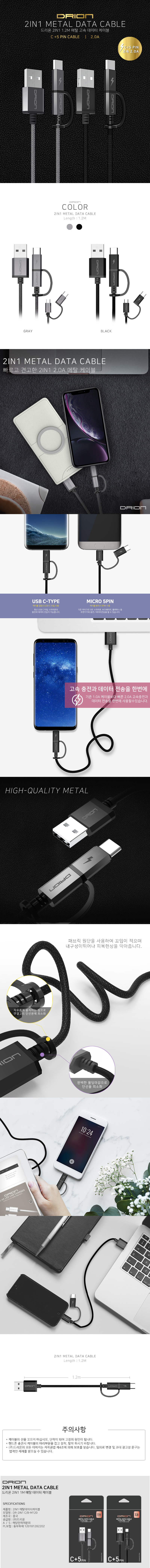 µå¸®¿Â ¸ÞÅ» 5C µ¥ÀÌÅÍÄÉÀ̺í (2.0A) ±æÀÌ 1.2m